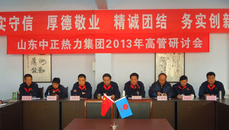 山東中正熱力集團2013年高管研討會于2013年3月29日上午8:00在集團總部三樓會議室召開,會期三天。會議由集團公司董事長李廣法主持,集團公司各部門、各權(quán)屬公司領(lǐng)導參加了會議。會議上,各單位、各部門匯報了2012年度工作報告和精細化管理實施方案;總經(jīng)理蔣俊卿作年度工作報告,公布兌現(xiàn)2013年度年薪,與各獨立核算單位和部門簽訂2014年度安全、經(jīng)營目標責任書;討論通過了集團中長期規(guī)劃(2014-2023年度)及《全面推進集團精細化管理,為中正品牌和效益的提升而努力》、《集團資本運營管理實施意見》、《關(guān)于完善市場體系建設(shè)的實施意見》三個報告。
